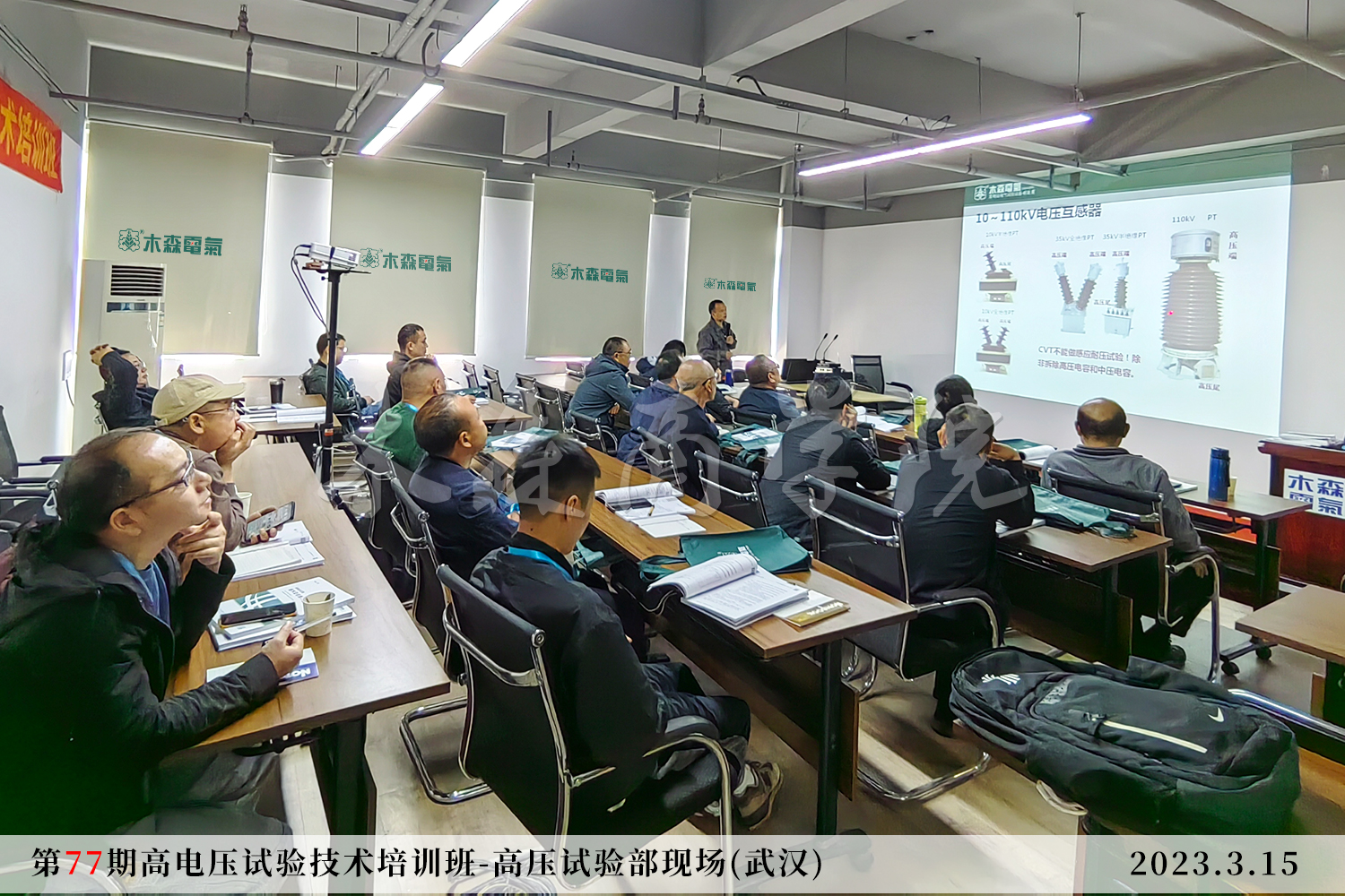 - 2023年3月15-16日,我們參與了武漢市木森電氣有限公司舉辦的高電壓實(shí)驗(yàn)技術(shù)培訓(xùn)班,課程內(nèi)容針對(duì)電力生產(chǎn)安全工作規(guī)程及站內(nèi)電氣一次系統(tǒng)圖、各種一次設(shè)備的結(jié)構(gòu)和原理、不同試驗(yàn)的試驗(yàn)方法和注意事項(xiàng)等方面的培訓(xùn)。