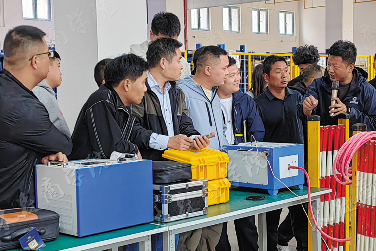 11月11日 中國(guó)電力企業(yè)聯(lián)合會(huì)派人監(jiān)考,“2024年第6期電氣試驗(yàn)工高級(jí)理論考試”湖北電力企業(yè)服務(wù)協(xié)會(huì)承辦,考場(chǎng)位于木森電氣商學(xué)院電力培訓(xùn)中心??荚噧?nèi)容涵蓋了電氣試驗(yàn)的基礎(chǔ)理論、安全規(guī)范、試驗(yàn)方法等多個(gè)方面。我司還設(shè)立了實(shí)操考點(diǎn),實(shí)操項(xiàng)目包含:絕緣電阻(高壓繞組-低壓繞組及地)、直流電阻測(cè)試、氧化鋅直流1mA參考電壓及0.75U1mA的泄露電壓試驗(yàn),另外還進(jìn)行了胸外心臟按壓項(xiàng)目的實(shí)操考試,理論考試形式為閉卷考試,確保了考試的公平性和公正性。中國(guó)電力企業(yè)聯(lián)合會(huì)作為電力行業(yè)的重要組織,通過舉辦高級(jí)理論考試,旨在檢驗(yàn)電氣試驗(yàn)工的專業(yè)知識(shí)掌握程度,推動(dòng)他們不斷學(xué)習(xí)新知識(shí)、新技術(shù),以適應(yīng)電力行業(yè)快速發(fā)展的需求。11月12日下午的串聯(lián)諧振課程,廣西學(xué)員們表現(xiàn)出極高的學(xué)習(xí)熱情,正式講解操作之前,講師陳工先對(duì)相關(guān)理論知識(shí)進(jìn)行了詳細(xì)講解,包括R、L、C串聯(lián)電路發(fā)生諧振的條件和諧振時(shí)電路的特性等。隨后,陳工開始了現(xiàn)場(chǎng)實(shí)操培訓(xùn),從設(shè)備的接線到參數(shù)設(shè)置,再到試驗(yàn)操作,都進(jìn)行了詳細(xì)的演示和講解。經(jīng)過一天的共同交流和學(xué)習(xí),對(duì)方完全掌握了串聯(lián)諧振耐壓試驗(yàn)的操作方法,并對(duì)木森的儀器表示了高度滿意。11月13日下午的第二項(xiàng)課程電纜故障查找辦法課程也吸引了云南學(xué)員的注意。課程內(nèi)容豐富,既有理論知識(shí)講解,也有實(shí)際操作演示。李工分享了理論知識(shí):包括電纜的結(jié)構(gòu)、工作原理、常見故障類型及成因等。通過模擬故障場(chǎng)景,讓學(xué)員親手操作電纜故障測(cè)試儀等設(shè)備,掌握故障定位、檢測(cè)及修復(fù)技能。結(jié)合實(shí)際案例,分析故障發(fā)生的原因、處理過程及結(jié)果,提高學(xué)員的故障分析能力。