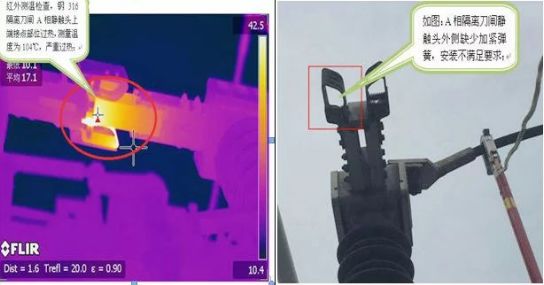 原因分析:此型號(hào)隔離刀閘夾緊彈簧在運(yùn)行操作中不會(huì)自動(dòng)脫落(因?yàn)樗旧砭蛶Фㄎ讳N),在隔離刀閘安裝調(diào)試時(shí),漏裝一只夾緊彈簧,長期運(yùn)行中,接觸部位松動(dòng)接觸不良,大電流沖擊下,引起動(dòng)靜觸頭過熱,不滿足“五通一措”設(shè)備驗(yàn)收部分的要求。。